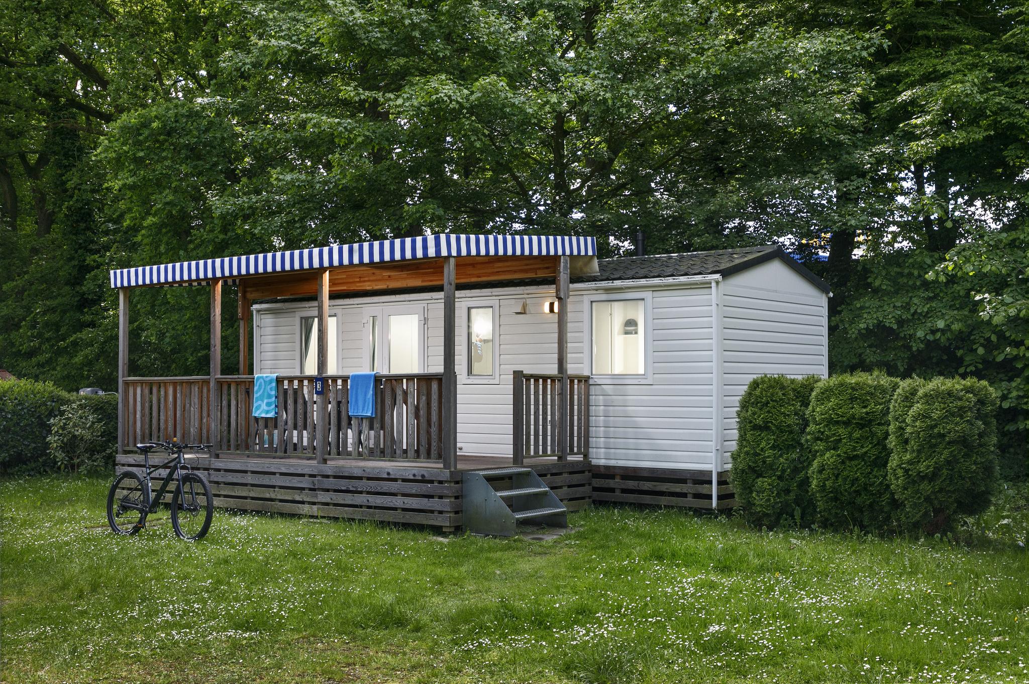 Die Mobilheime Mars sind mit überdachter Holzveranda oder Steinplattenterrasse ausgestattet und für 4 Erwachsene und 1 Kind (bis 6 Jahre) geeignet. Ausgestattet sind die geräumigen Mobilheime mit einem Schlafzimmer mit Doppelbett, einem Schlafzimmer mit 2 Einzelbetten und teilweise einem Etagenbett für ein Kleinkind sowie eine Sitzgruppe im Wohnbereich, die zu einer Schlafcouch für 1 Kind bis 6 Jahre umgebaut werden kann. Dazu verfügt das Mobilheim über ein Badezimmer mit Dusche, Waschbecken und WC. Die Küche ist mit Gasherd, Kühlschrank, Kaffeemaschine, Mikrowelle, Wasserkocher und Koch- und Essgeschirr ausgestattet. Gemütliche Stunden garantiert die Veranda inkl. Gartenmöbel.